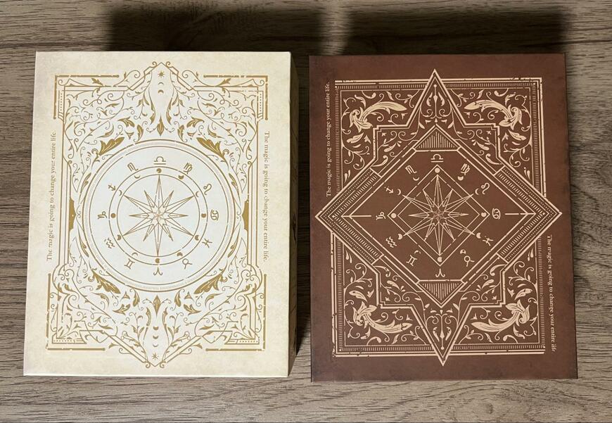 裏面には、ホロスコープのようなものがデザインされています。裏側のデザインも幻想的でおしゃれですね。