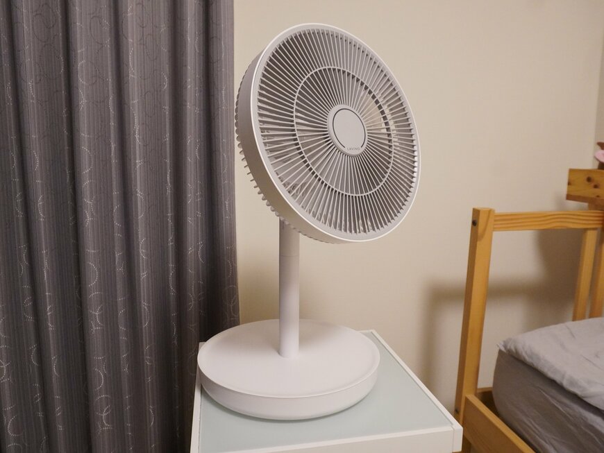 ポール部分は組み立て式になっており、短くすることで卓上ファンのような使い方もできます。分離させたポールは台座に収納でき、ファン部分も含めて非常にコンパクトにまとまります。