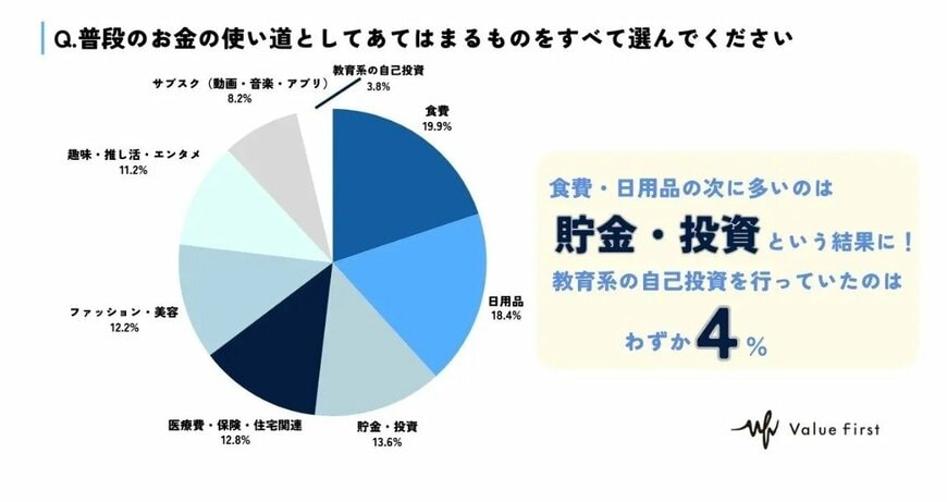 同社では、「教育系の自己投資」にお金をかけている人が全体のわずか3%にとどまることに対し、「自己成長やスキルアップの重要性が理解されていたとしても、日々の出費や将来の不安の前では、余裕のある人だけができる選択になってしまっている現状を浮き彫りにしています」と分析しています。