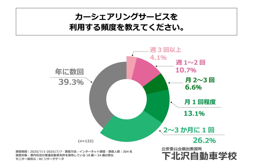 都内在住のZ世代の4割が利用しているカーシェア。それでは、どのくらいの頻度で利用されているのでしょうか。
