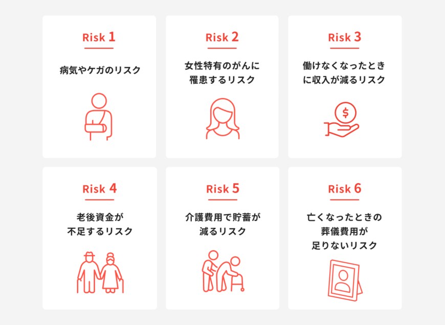 2. リスク別:40代独身女性が備えるべき6つの保障
