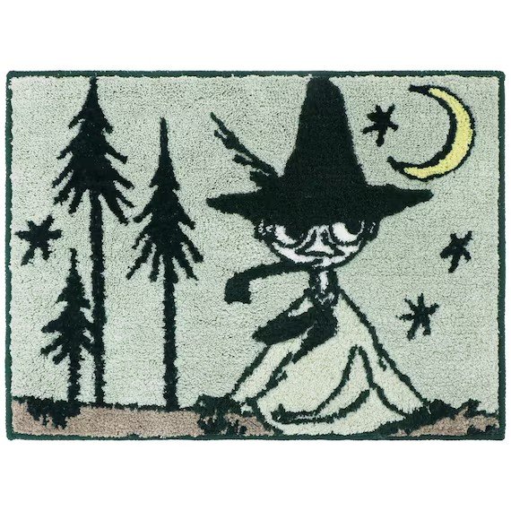 グリーンの背景に夜の森で佇むスナフキンが描かれた、落ち着いた雰囲気の一枚。月や星がデザインのアクセントになっており、シックで大人っぽい空間を演出してくれます。