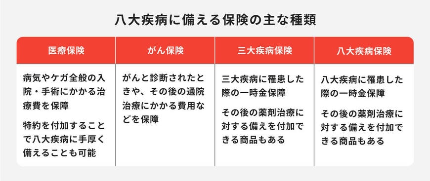 2. 八大疾病に備える保険の種類と特徴