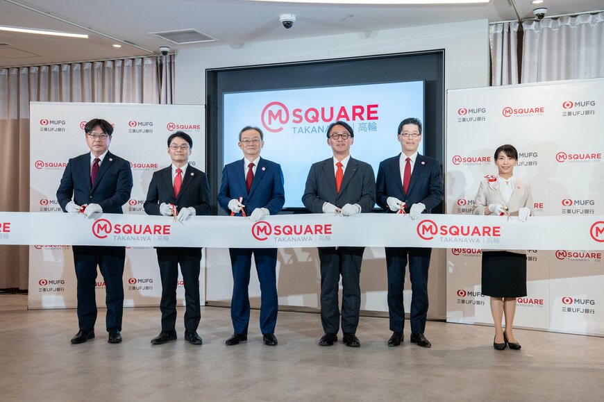 金融の分野では、株式会社三菱UFJ銀行が20年ぶりとなる新型店舗「エムットスクエアTAKANAWA」をオープン。25年9月8日にはオープンを記念して、店舗説明会とテープカットセレモニーが行われました。