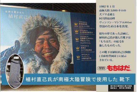 唯一無二の暖かさから著名人の愛用者も多い「もちはだ ハイソックス」。特に印象的なのが、冒険家の植村直己氏が南極大陸冒険時に着用していたというエピソードです。