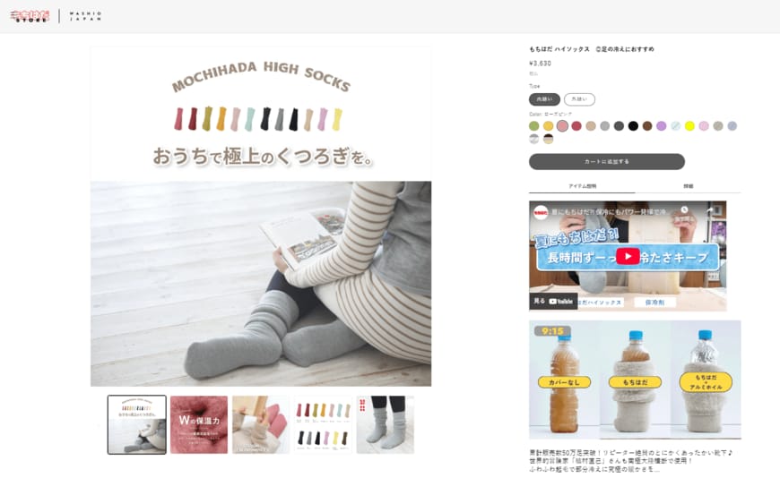 公式ストアのもちはだ ハイソックスの価格は税込3630円。うれしいのが、カラバリの豊富さです。欠品中のカラーもありますが、全17色を用意しており、老若男女が自分の好きな選択ができるようになっています。