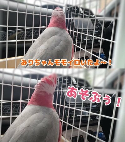 道中でみりんちゃんと同じモモイロインコを見つけた@anz_omomiriさん。