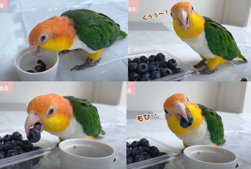 この日のおやつは、生のブルーベリーでした。とろろちゃんは生のブルーベリーが気に入ったようで、美味しそうに食べていました。