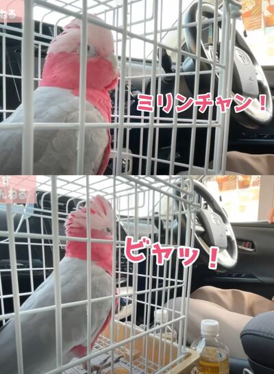 聞こえる店員さんの声に反応してか、「ミリンチャン!」と大きな声で答えます。