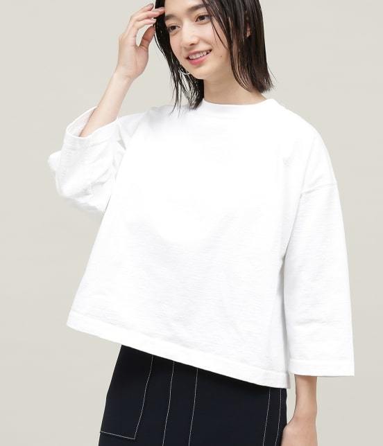 ワイドな身幅に短めの着丈がオシャレな一着。使いやすい7分袖で、これ一枚はもちろんカーディガンやニットのインナーとしても最適です。