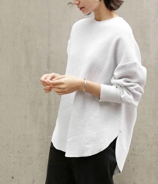 ゆったりとしたフォルムで旬の着こなしが楽しめるサーマルプルオーバー。厚みと張りのある生地が上品で、気になるボディラインもカバーしてくれます。