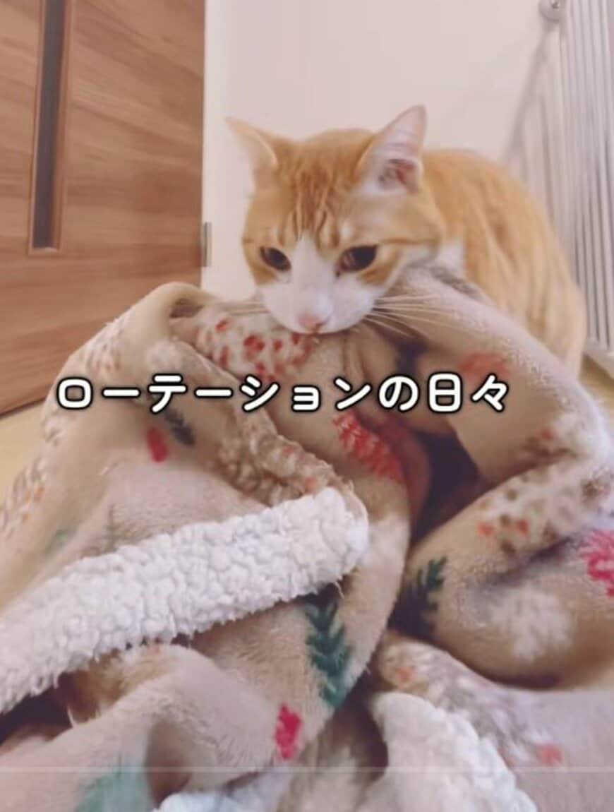 毛布を咥えたりふみふみしたりして、激臭に育てるのが大好きな猫ちゃんです。