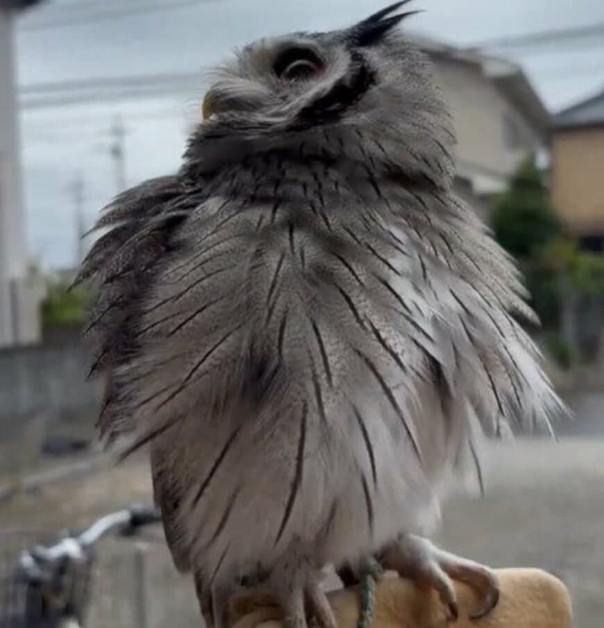 「アフリカオオコノハズクの小羽ちゃん」が、徐々に羽を膨らませて、雨浴びをする動画がXで話題です。投稿されたのは「@purinon2929k」さん