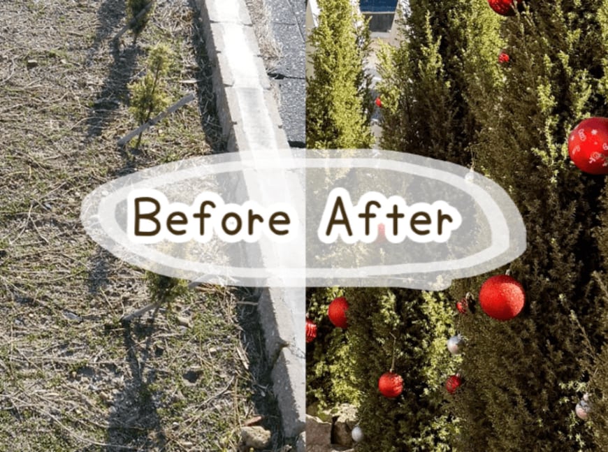 まずは「植え付けてから3年目(左:2018年撮影)」と「9年目(右:2024年撮影)」をご覧ください。小さな苗木だったコニファーが、立派に成長した様子が分かりますね!
