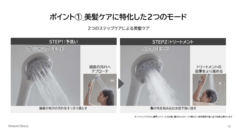 2. 【パナソニック初のシャワーヘッド】5つのモードでロジカルに美髪・美肌を実現