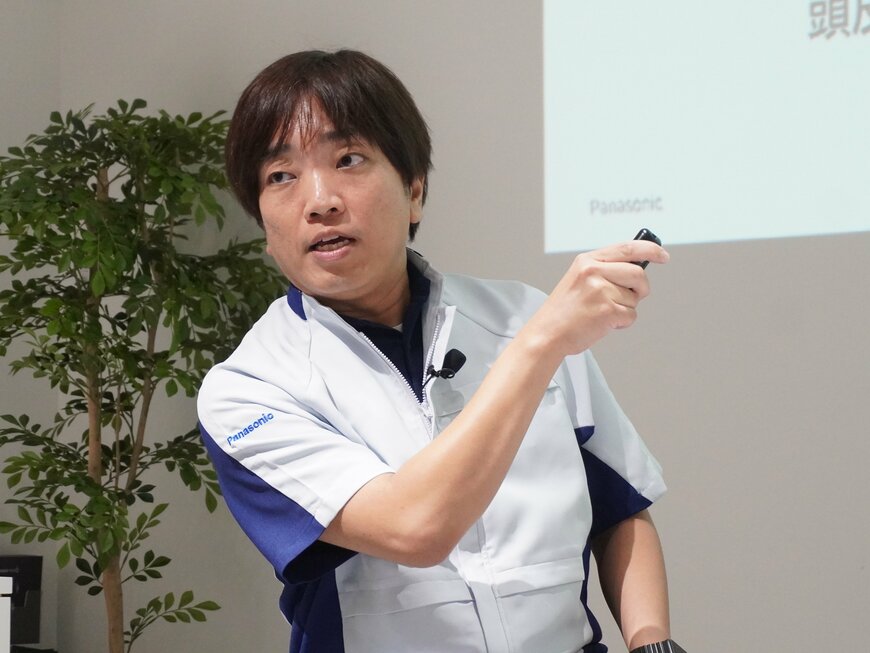 開発者の光岡氏は、プレシャンプーモードの水流設計は頭皮ブラシから着想を得たものであるというエピソードを披露。「ブラシのようにしっかりと髪を掻き分けるために最適な流線間隔を繰り返し検討した」と開発の苦労を語りました。