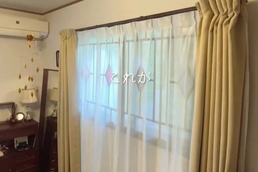 今回の動画では、カーテンボックスを自作して大正ロマン風の窓周りに大変身させるアイデアを公開。変身前の窓はステンドグラス風にDIYを済ませていますが、無機質なカーテンレールが目立っている状態に。