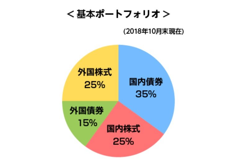 年金積立金管理運用独立行政法人(GPIF)の基本ポートフォリオを見ていると、以下のような資産配分となっています。
