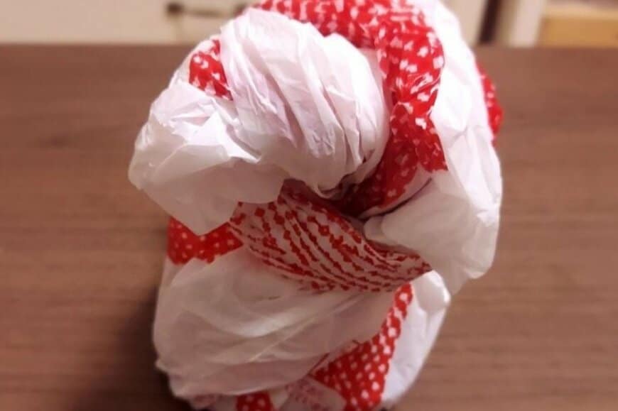 そこに収められていたのは、「しまむら」の袋に厳重に包まれた謎の物体でした。