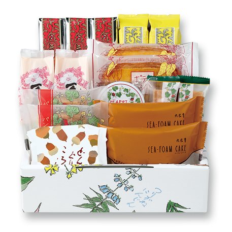 税込3300円のお得なセットには、六花亭を代表するお菓子がズラリ。今月は、季節のお菓子である「どんぐりころころ・パンプキンパイ・シーフォームケーキ(キャラメル)」に加え、ハロウィンパッケージが目を引くチョコレートやキャラメルいった10月らしいお菓子が人気商品と共に花柄箱に入って自宅に届きます。