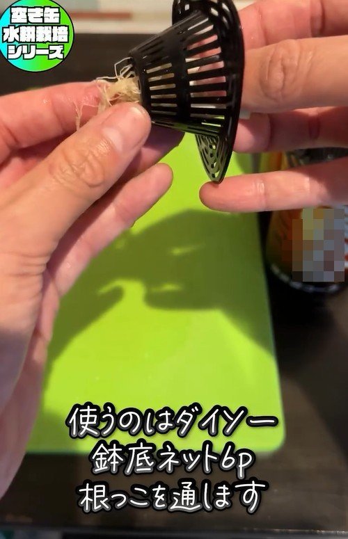 1.2 【小ネギの水耕栽培 1】根を鉢底ネットにセットする