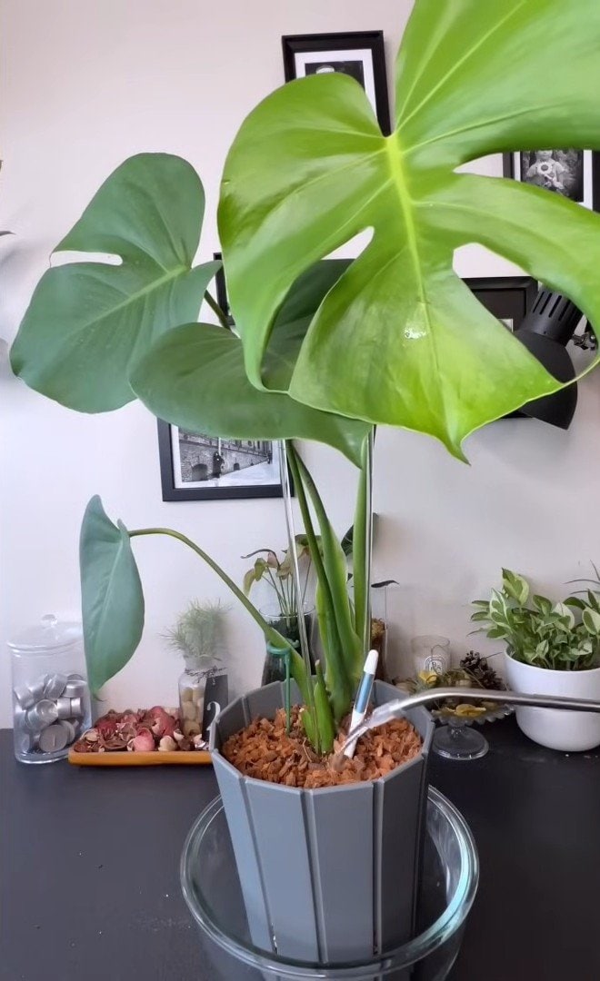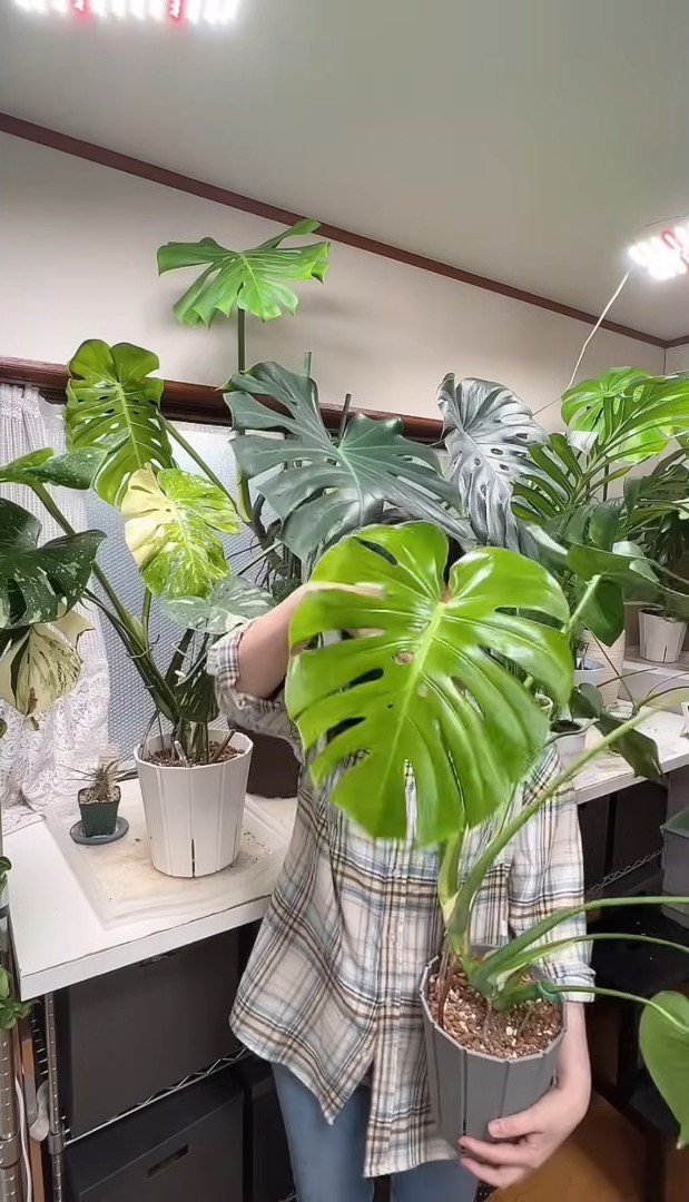こちらの写真は、3回目の植え替えから約2か月半後(購入から7カ月後)のモンステラの様子です。樹高・葉・茎ともにずいぶん大きくなり、葉の切れ込みも深くなってきましたね!