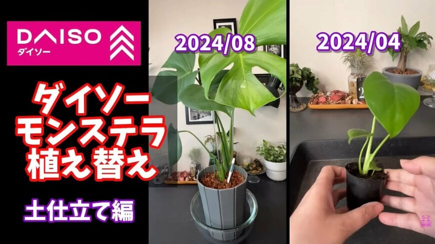 写真は購入時と8月時点のビフォーアフターです。樹高が高くなっているだけでなく、葉の数が増えてサイズも大きくなり、葉にはモンステラらしい切れ込みが。茎も太くなっていることが分かりますね!