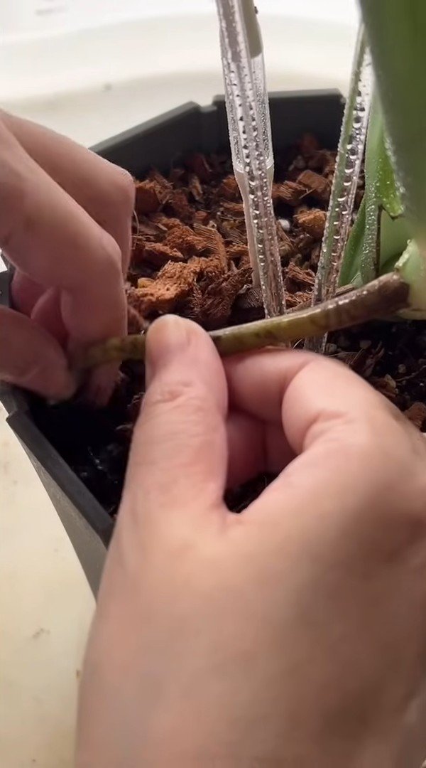 気根が出てきたら霧吹きで湿らせ、土に埋めてあげるのも成長を早める大事なポイントとのことでした。