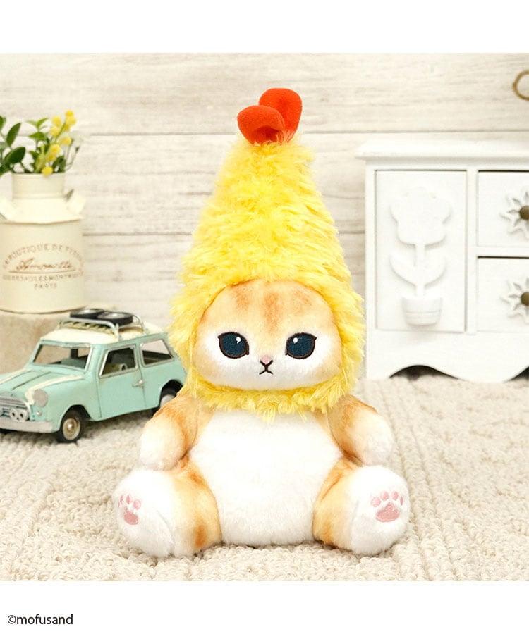 ハニーズに登場した「モフサンドのぬいぐるみ」のぬいぐるみは、サイズも大きめです。えびにゃんデザインは約25cm・サメにゃんデザインは約20cmです。