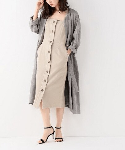 ロング丈でも重たく見えないよう、裾にはサイドスリットを。ロングスカートやワイドパンツを合わせたレイヤードスタイルも、すっきりとした印象で楽しめます。