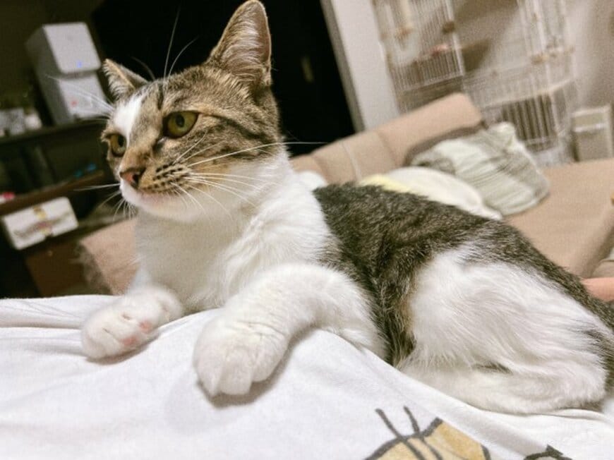 「ひさしぶりの長時間お留守番だったからか話しかけてもしばらく遠い目してた」そんなコメントとともに投稿されたのは、2枚の写真でした。
