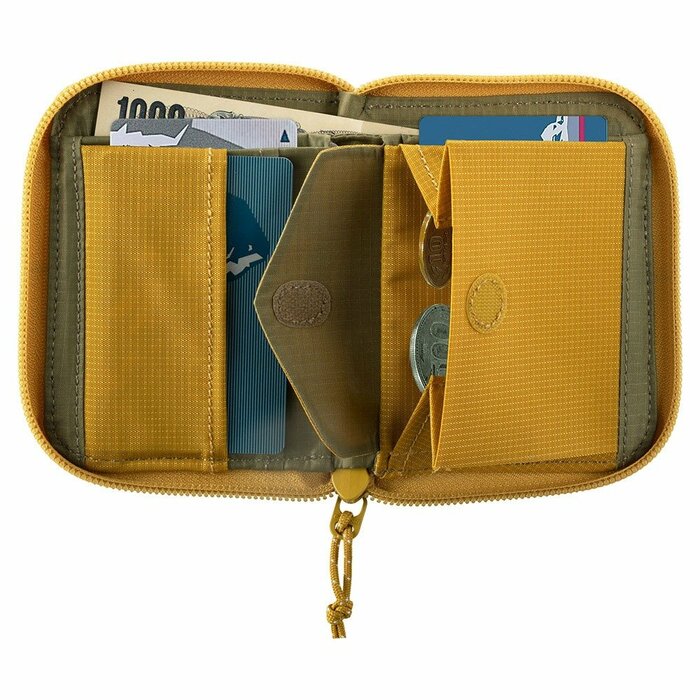 特に秀逸なのが、内部に設けられた「コインポケット」。ポケット内部に芯材が入っていることで型崩れしにくく、小銭が探しやすく、そして取り出しやすい構造になっています。会計時にもたつきがちな小銭の出し入れを、スムーズにしてくれるモンベルらしい細やかな配慮が光ります。