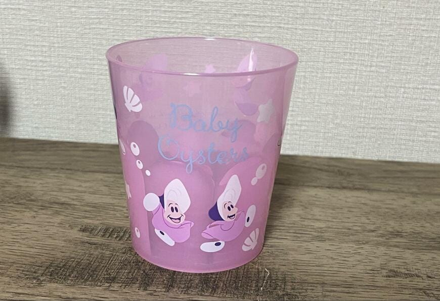 こちらがセリアで購入することができるヤングオイスターデザインのコップです。楽しそうにしているヤングオイスターたちがかわいいですね。
