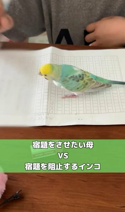 「宿題を邪魔するインコ」と「邪魔を阻止したい母」の戦い紹介した動画が話題です。投稿したのは「daiinkoteikoku_soraoto」さん。