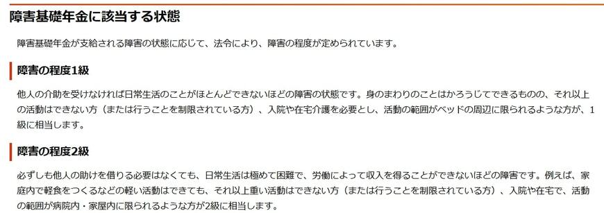 なお、日本年金機構によると障害等級の基準は以下のように定められています。