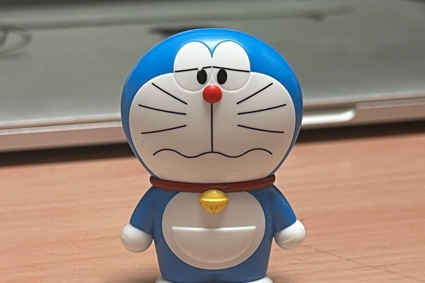 そこに収められているのは、困った表情を浮かべたドラえもんのフィギュアでした。正面から見るとおなじみの丸い顔と愛嬌のある表情がかわいらしいですが…。