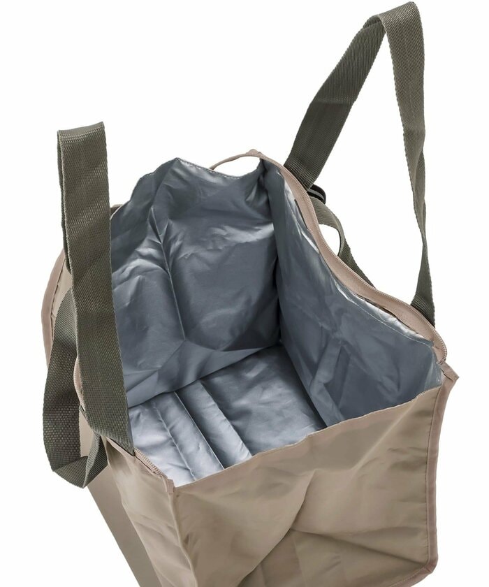 まずご紹介するのは、お弁当やデリを買う機会が多い方にぴったりの「マチ広保冷スクエアエコバッグ」。価格は880円(税込)で、カラーはベージュとグリーンの2色展開です。