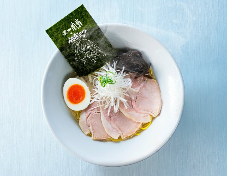 まろやかなとんこつスープに黄色の特製麺を合わせた一杯。トッピングは、塩こうじと低温調理で仕上げた柔らかいロースチャーシューを3枚、半熟玉子1/2個、白ネギ、青ネギ、きくらげ、プリント海苔。たっぷりのボリュームで、一風堂らしさと初音ミク要素をバランスよく融合させています。価格は税込1450円。