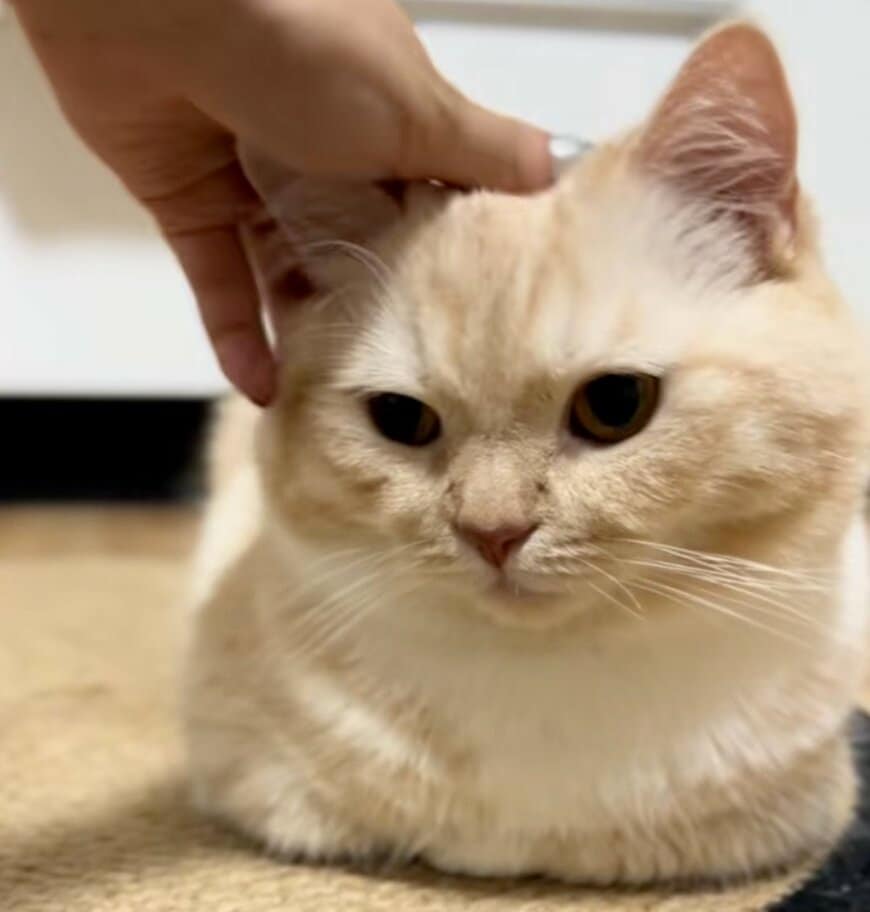 1. 飼い主さんが撫で撫でするも…猫ちゃんは面倒くさそう?