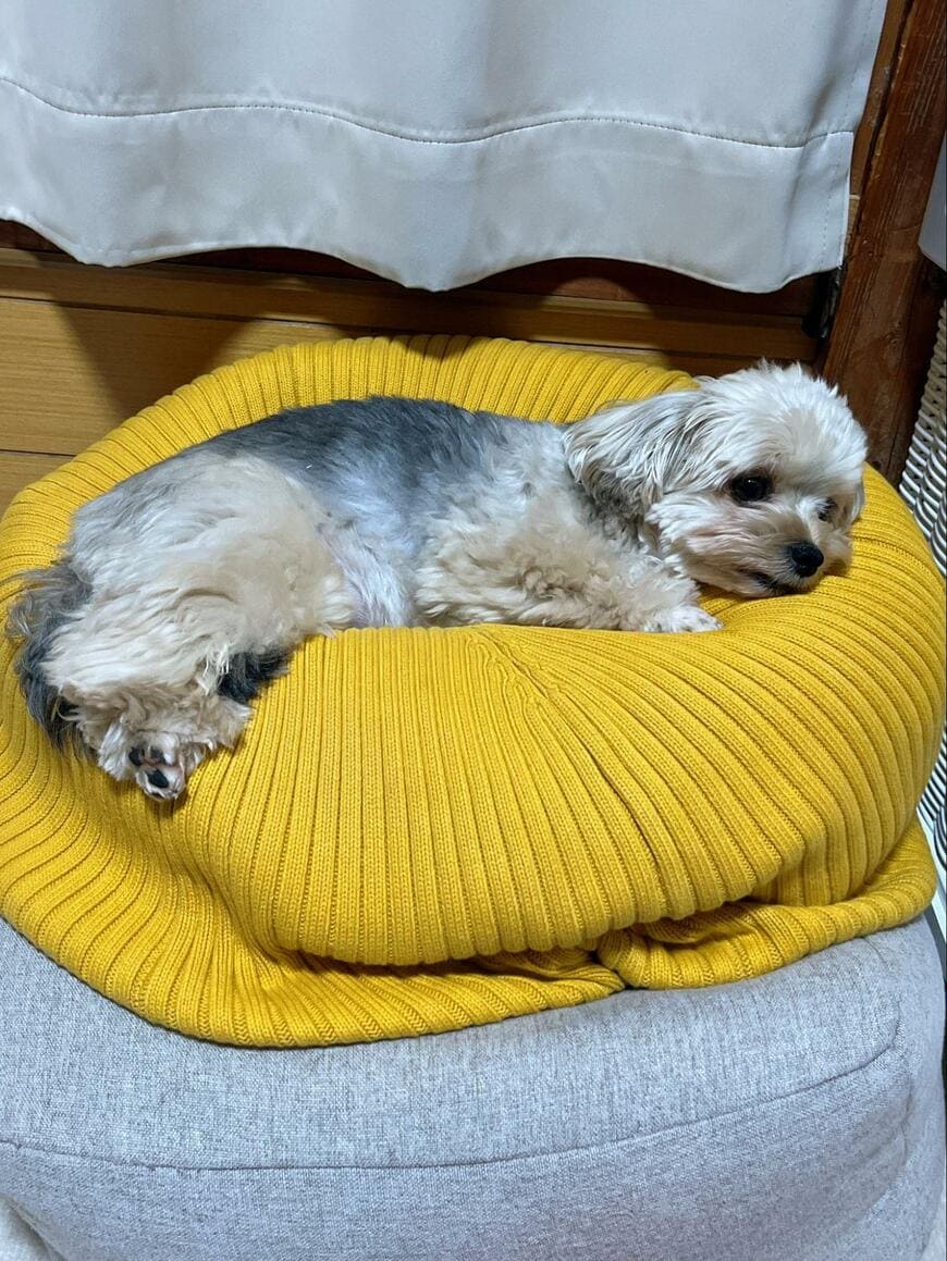 イビキをかいて寝ていたワンちゃんが注目を集めています。投稿したのは、Xユーザーの「@potage_0924」さんです。