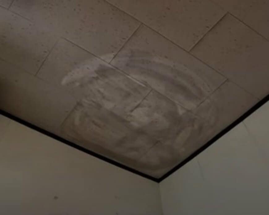 変身前の天井は、長年の使用によるくすみや油汚れのような黒っぽい汚れが広範囲に及んでいます。