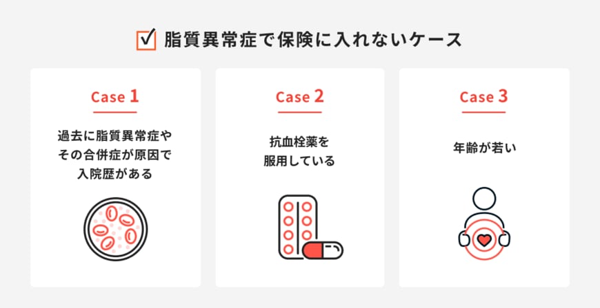 未成年から30代で脂質異常症の治療を受けている場合、特に家族性脂質異常症と診断されている場合は、通常の保険への加入が困難になることがあります。