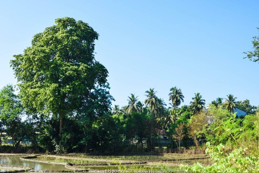 そこに写っていたのは、赤と黒、緑色が混ざった模様のヤマカガシでした。投稿主の@GtYb1nWNyK1W1m5さんが、田園地帯の用水路で見つけたヤマカガシ。