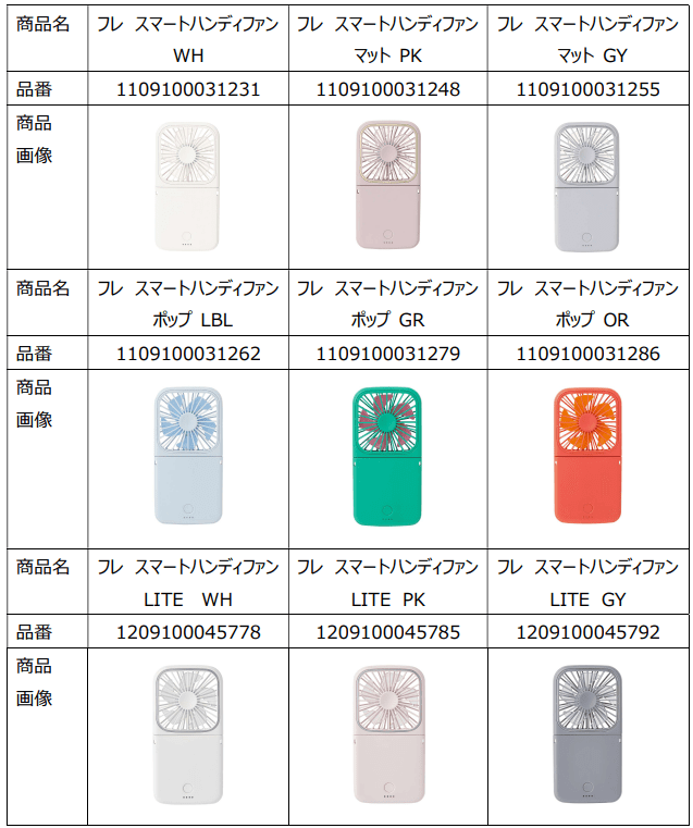 今回の自主回収の対象商品は「フレ スマートハンディファン(2025年製)」です。24年製の商品は対象には含まれていません。