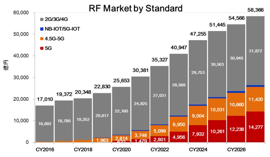 5G対応スマホは2027年に12億台、本格普及は2020年後半から 部品市場は18年比3倍の1.4兆円に-ナビアン予測 2019.04.10 06:00 公開 執筆者津村 明宏 RFデバイスの市場予測 2/2 この写真の記事へ戻る 電子デバイス産業新聞 編集長 津村 明宏 copy URL 著者 津村 明宏 株式会社産業タイムズ社 電子デバイス産業新聞 編集長 1995年3月に関西大学経済学部卒。1999年3月 ㈱産業タイムズ社に入社。電子デバイス業界の専門紙である電子デバイス産業新聞(旧・半導体産業新聞)の記者として、2007年より副編集長、2009年12月より編集長。 あわせて読みたい