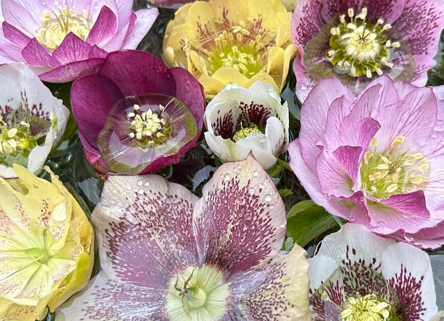 純白から、淡いピンクやソフトブルーに変化する花色も魅力です