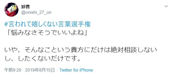がっくりくる「言われて嬉しくない言葉選手権」 できれば言わないで! 2019.08.23 06:00 公開 執筆者衛澤 創 02/11 03/11 04/11 05/11 06/11 07/11 08/11 次の写真ページへ この写真の記事へ戻る copy URL 執筆者 衛澤 創 作家/ライター 主な執筆分野は漫画・アニメ・映画・ゲーム・アイドル歌謡・懐メロなど2~2.5次元のサブカルチャー。精神障害・性同一性障害・同性愛・虐待サバイバーの当事者で、これらについての記事を書いたり講演などもしています。1年中アロハで髭でつるつる坊主なのでよく怖がられますが、怖くないです。好きなものはねこ・甘いもの・変なもの。Twitter:@ezawa_sanjo あわせて読みたい