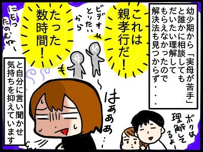 「実母が苦手」に罪悪感。親との時間を我慢しているなんて私だけ?自営業主婦の泣き笑いの体験記 【マンガ記事】駄菓子屋さんの育児日記 2019.09.12 06:00 公開 執筆者ねこねこむ 02/08 03/08 04/08 05/08 06/08 07/08 08/08 この写真の記事へ戻る ねこねこむ copy URL 執筆者 ねこねこむ 漫画家 主婦&駄菓子屋店主。プロフィール 二人の子供を育てながら自宅でお店を営む主婦です。日々漫画やイラストを描いています。Twitter:@HHeiPmKafXx0ODH あわせて読みたい