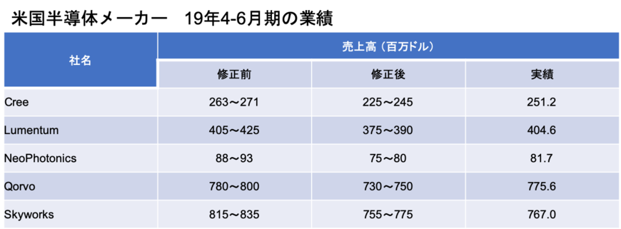 ファーウェイ取引禁止措置、米国半導体4~6月期業績への影響は? 7~9月期はマイナス影響顕著 2019.09.18 06:00 公開 執筆者津村 明宏 01/01 この写真の記事へ戻る この写真の記事へ戻る 電子デバイス産業新聞 編集長 津村 明宏 copy URL 執筆者 津村 明宏 株式会社産業タイムズ社 電子デバイス産業新聞 編集長 1995年3月に関西大学経済学部卒。1999年3月 ㈱産業タイムズ社に入社。電子デバイス業界の専門紙である電子デバイス産業新聞(旧・半導体産業新聞)の記者として、2007年より副編集長、2009年12月より編集長。 あわせて読みたい