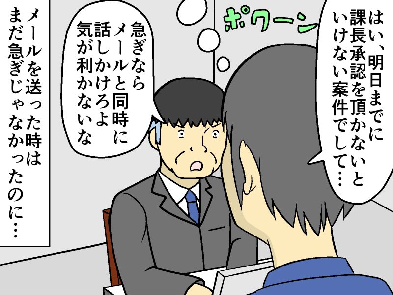 上司「メール送ったら口頭で伝えろ」部下「それ、メールの意味あるのか…」。あなたの職場は? 【マンガ記事】妄想シャイン 2020.01.30 00:05 公開 執筆者寺須こってぃ 02/08 03/08 04/08 05/08 06/08 07/08 08/08 この写真の記事へ戻る 寺須こってぃ copy URL 執筆者 寺須こってぃ Web漫画家 Web漫画作家、WEB漫画とWEB小説の新都社にて2008年スコッティ名義でデビュー、現在ライブオブジョブ連載中。著作に「リリースニートキャンプ」「クウォーターウォーターライン」などがある。【マンガ記事】妄想シャインまとめ あわせて読みたい